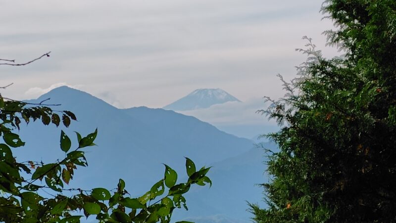 富士山、登った時は雲の中でしたが、昼食後、富士山は顔を出し今年初めての雪の積もった富士山でした。