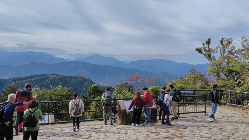 )→高尾山(599m 10:25〜30)→一丁平展望デッキ(昼食11:10〜12:00)→小仏城山(670m コーヒータイム12:20〜50)→バリエーションルート登山口駐車場(日影)13:50