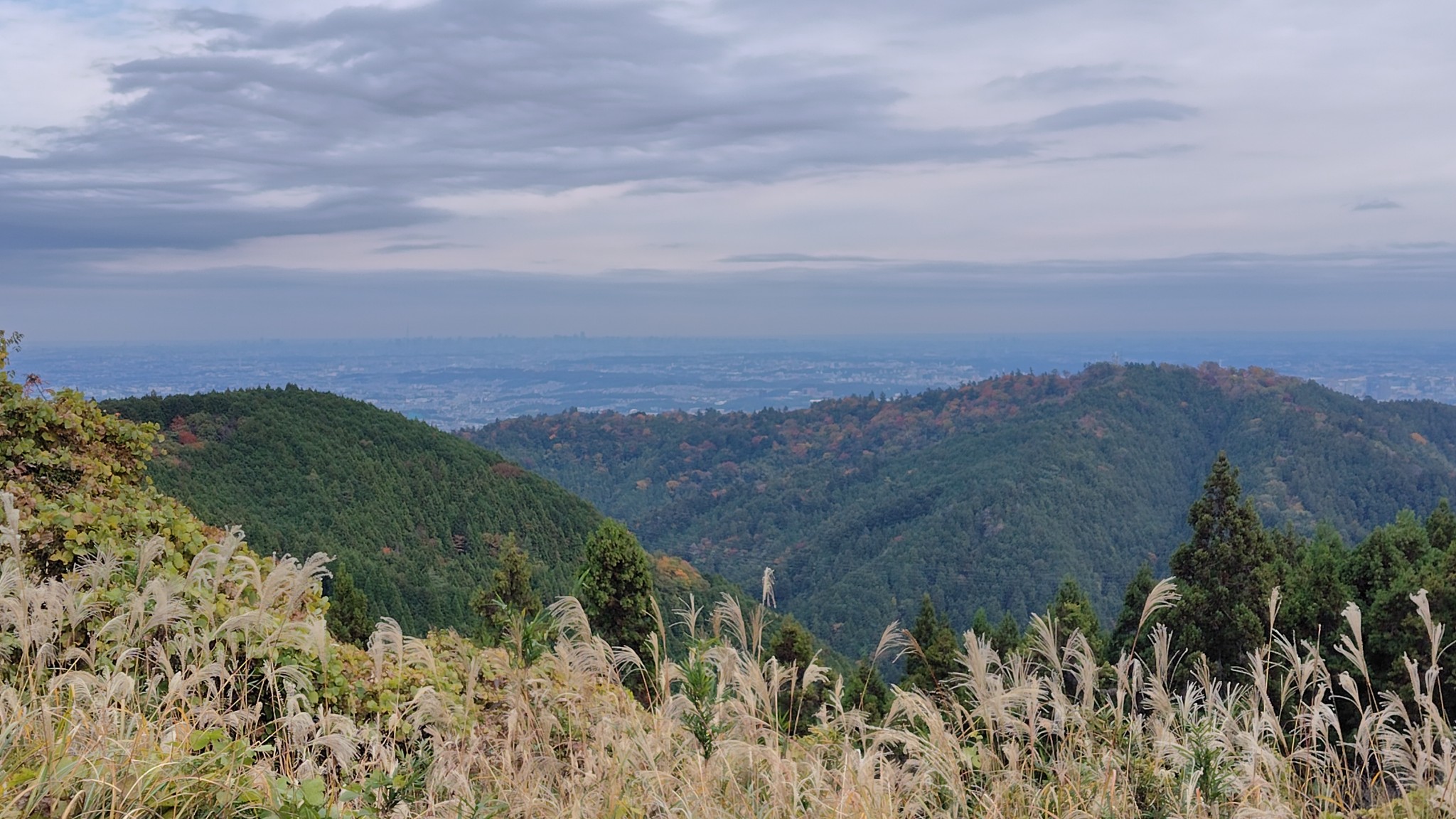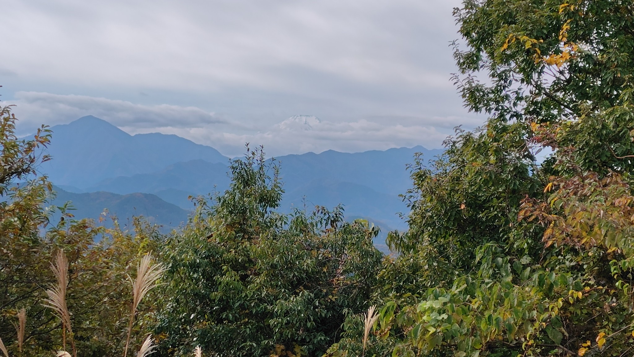 ④高尾山山頂より、左側は大室山、右側は富士山(富士山は上しか見えません)