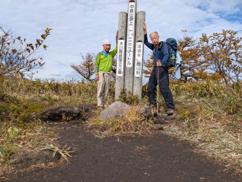 二人で下蒜山から上蒜山まで縦走しました。朝は放射冷却のため寒かったが徐々に暖かくなりました。中蒜山で昼食を食べました。