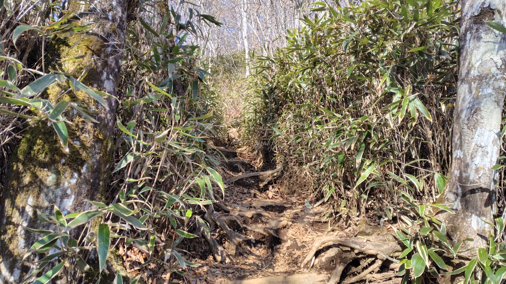 気温が低く、登山道の土が凍り滑らなく歩き安かった。