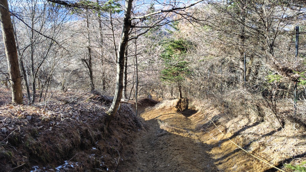 ⑧石割山下山道、気温が低く土が凍り滑らなく歩き安かった