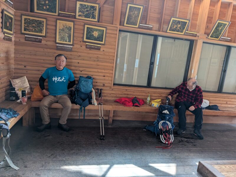 大峠8:20ー横田別れ9:25ー山頂10:40休憩11:05ー避難小屋11:45昼食12:50ー横田別れ13:00ー大峠13:55